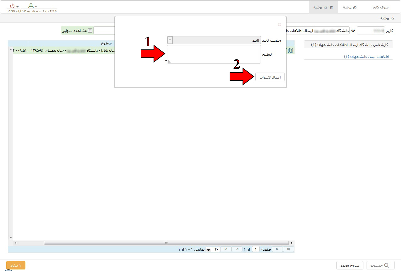 ۴. کارشناس داشنگاه اطلاعات را تائید و برای ریاست دانشگاه ارسال می کند.