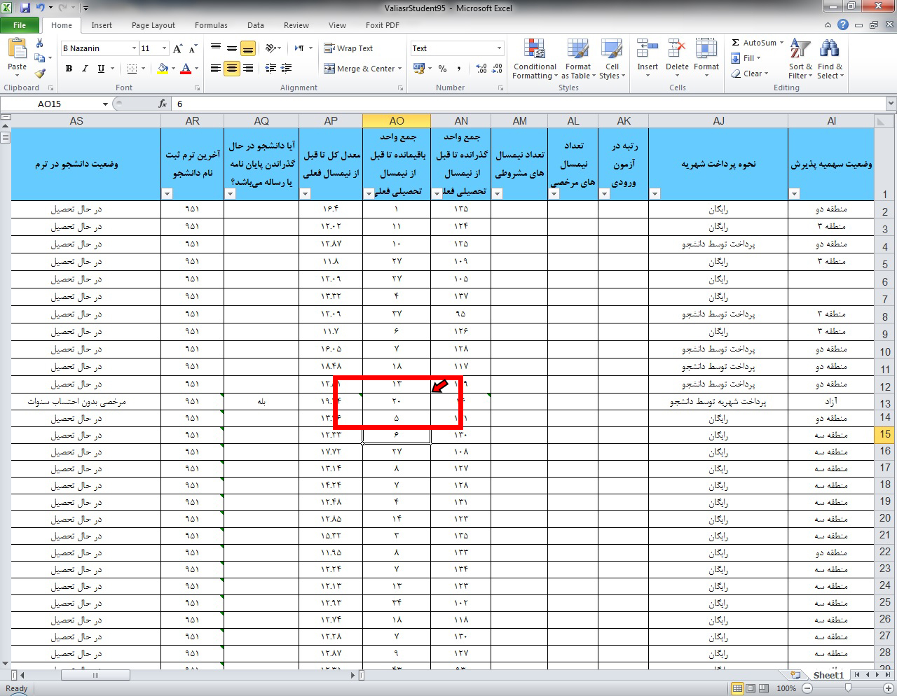 - برای ستون هایی مانند نیمسال ورود و آخرین ترم ثبت نامی و ... که باید یک عدد سه رقمی وارد شود (مثلا ۹۵۱)، مقادیر ثبت شده مطابق فرمت صحیح آن ستون نمی باشد. (مثلا در آن ستون عدد ۵ رقمی وارد شده است)