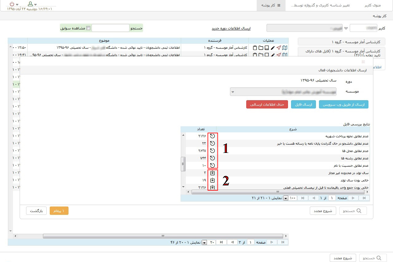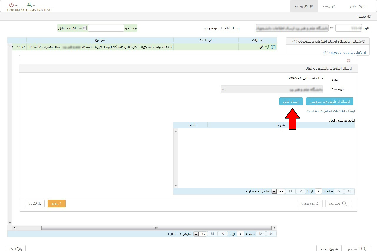 ۱. ارسال اطلاعات از طرف کارشناس دانشگاه