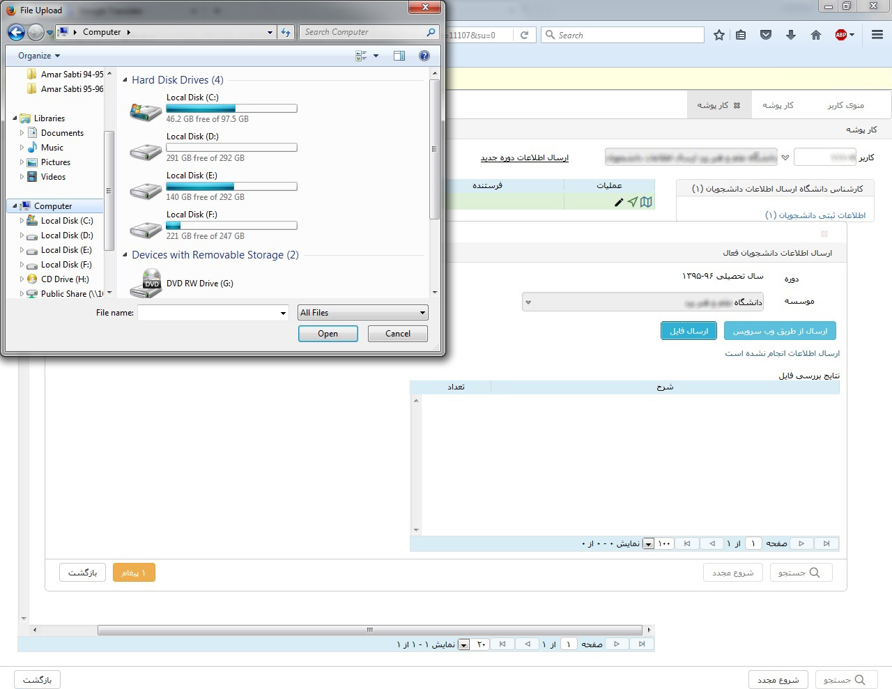 ۶. دکمه "ارسال فایل" را زده و سپس طبق روال قبل عمل کنید.